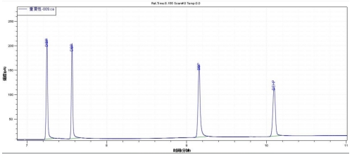 圖1. 4種鄰苯二甲酸酯類化合物標(biāo)準(zhǔn)物質(zhì)的參考色譜圖