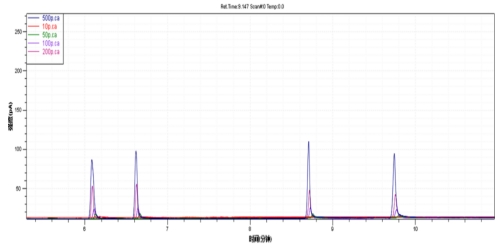 圖2. 4種鄰苯二甲酸酯標(biāo)準(zhǔn)溶液線性譜圖疊加