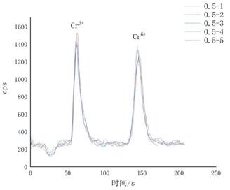 多次進(jìn)樣測定濃度為0.5 μg/L Cr3+和Cr6+混合標(biāo)準(zhǔn)溶液,進(jìn)行重復(fù)性試驗,見圖3: